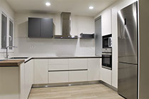 Reforma integral de una vivienda en el centro de Alicante. Según las necesidades del cliente se ha buscado un espacio distributivo dándole especial importancia a la comunicación entre salón y cocina, mediante una puerta de cristal corredera. A destacar la ubicación de zonas de almacenaje totalmente integradas en el entorno de la casa. Se han optado por colores cálidos y tranquilos, dándole un especial cuidado a la iluminación. Baños funcionales y con personalidad.
